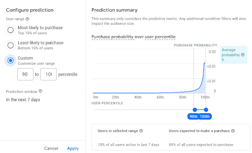 I firmly believe most organizations would be better off building an audience in GA4 of the users in the 65th to 95th percentile of conversion probability, and focusing all of their efforts exclusively on these people.